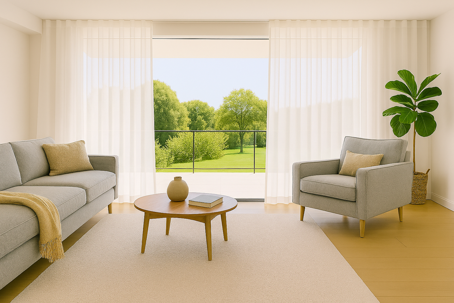 Soft, translucent fabric that filters natural light beautifully while maintaining a sense of openness. Ideal for living rooms, dining spaces, or layered behind blockout curtains.