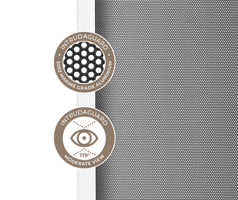 IntrudaGuard® screens are made from specially tempered 5052 marine grade aluminum with a distinguished perforated design, offering corrosion resistance.