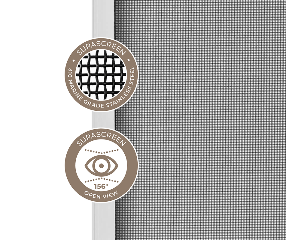 Strong and discreet, Amplimesh SupaScreen® is made of genuine Meshtec high tensile 316 Marine Grade Stainless Steel woven into a fine mesh.